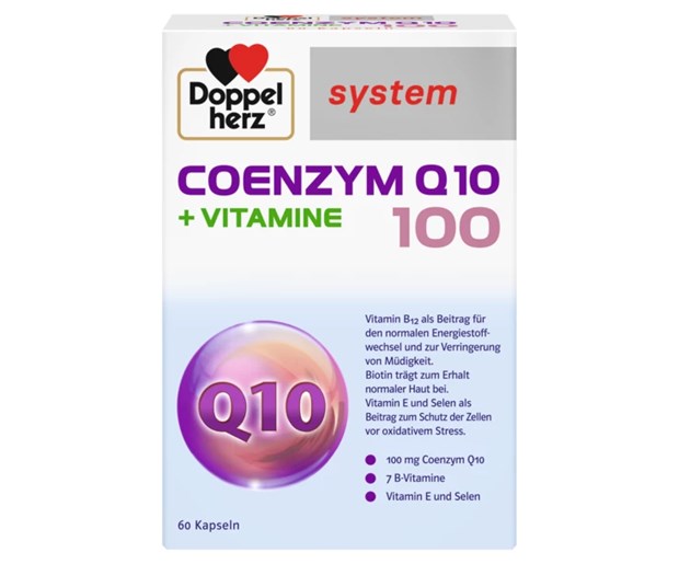 Doppelherz system KOENZIM Q10 100 + VITAMINI sadrži B vitamine koji doprinose normalnom metabolizmu stvaranja energije te selen i vitamin E koji doprinose zaštiti stanica od oksidativnog stresa. Uz to, pruža 100 mg koenzima Q10 za dodatnu potporu stanicama.