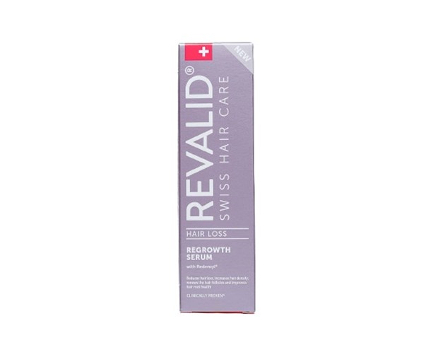 Revalid® serum za ponovni rast kose sadrži 3 % Redensyl® koji potiče rast, smanjuje gubitak i poboljšava gustoću kose. Sastoji se od dvije molekule zaštićene patentom dobivene od drva ariša i lista zelenog čaja. Znanstvena ispitivanja dokazala su da 3 % Redensyl® ima ciljani učinak na matične stanice folikula dlake koje stvaraju novu kosu. Do 28 000 novih vlasi nakon 3 mjeseca svakodnevnog korištenja. Ekstrakt cvijeta alpskog pelina iz švicarskih Alpi osiguravaju antioksidativna eterična ulja, čime nadopunjuje učinak Redensyl®. Dodane aminokiseline i pantenol hidratiziraju kosu i suho vlasište te potiču obnovu stanica kože.