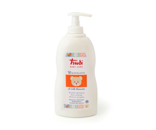 Trudi mliječna kupka sadrži blaga i hranjiva sredstva za čišćenje dobivena iz maslinovog ulja koja ne oštećuju zaštitnu barijeru kože. Natrij PCA i Erylite® hrane i hidratiziraju nježnu dječju kožu pružajući joj vlagu i zaštitu. Sastav fiziološkog pH prilagođen dječjoj koži nježno čisti tijelo i vlasište. Nježan i omekšavajući med cvijeta naranče hrani kožu, te svojim blagim i umirujućim mirisom pomaže bebi da se opusti prije spavanja, tijekom večernje kupke.